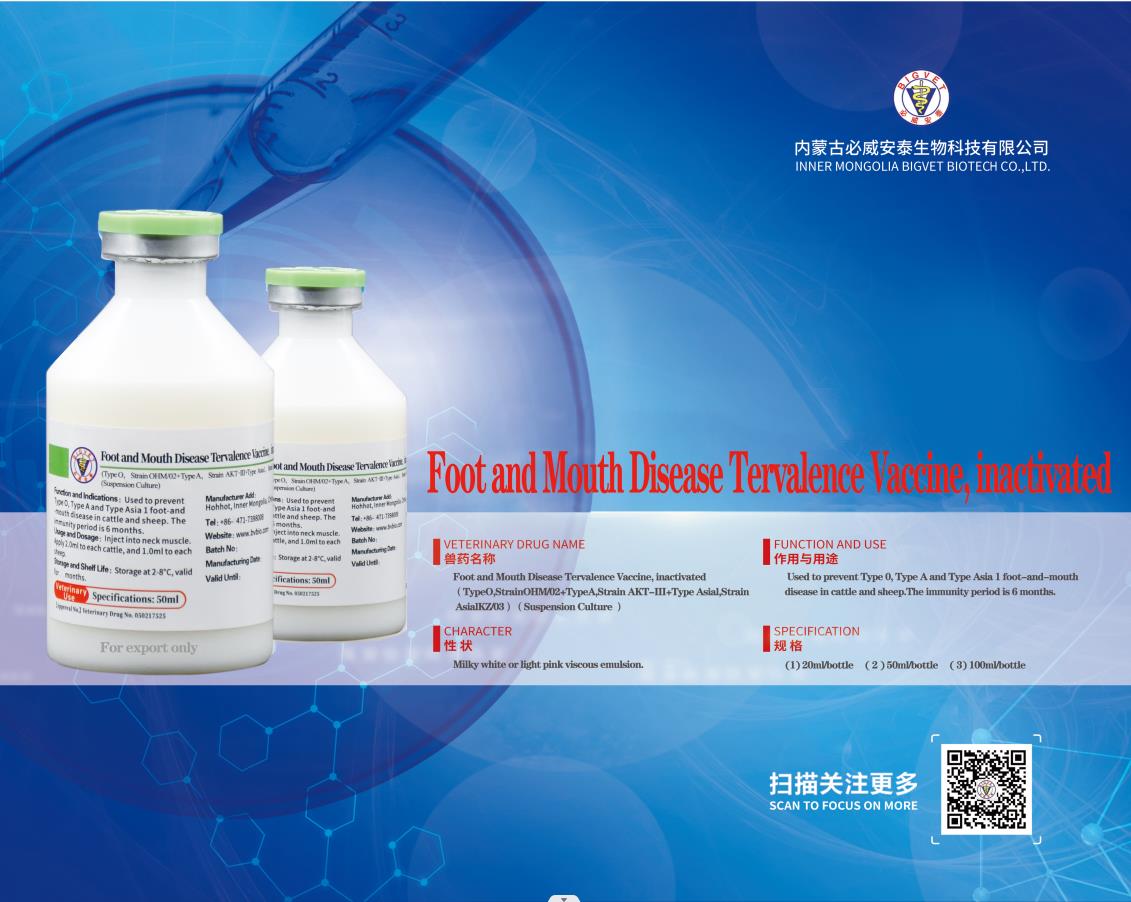 口蹄疫O型、A型二價滅活疫苗(OHM/02株+AKT-III株)(懸浮培養(yǎng)工藝)